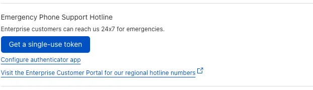 | Emergency Phone  Use phone support to reach out during emergencies such as site outages or DDoS attacks.  | Yes | No | No | No |
